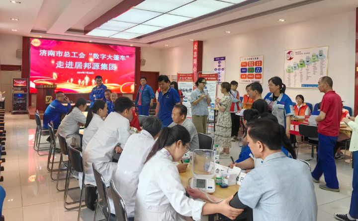 7月26日,濟南市總工會“數字大篷車”走進章丘區幸福企業——山東居邦源高端裝備科技集團有限公司,為一線職工送來貼心服務。濟南市職工服務中心副主任宮曉東,區總工會黨組副書記、副主席劉仁奎,居邦源集團黨支部副書記、工會主席景奉全,人事總監、工會副主席雷廣妮參加活動。